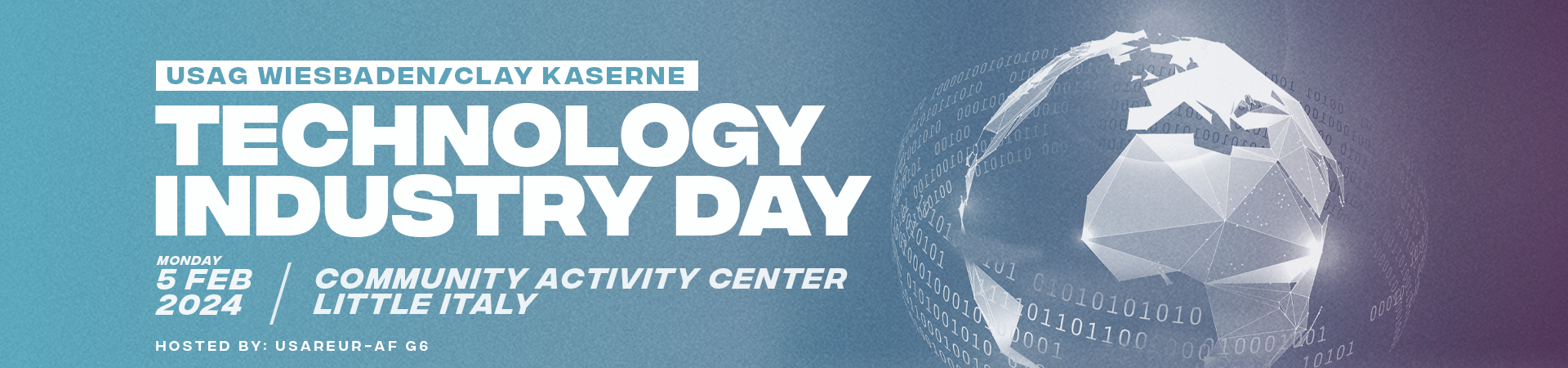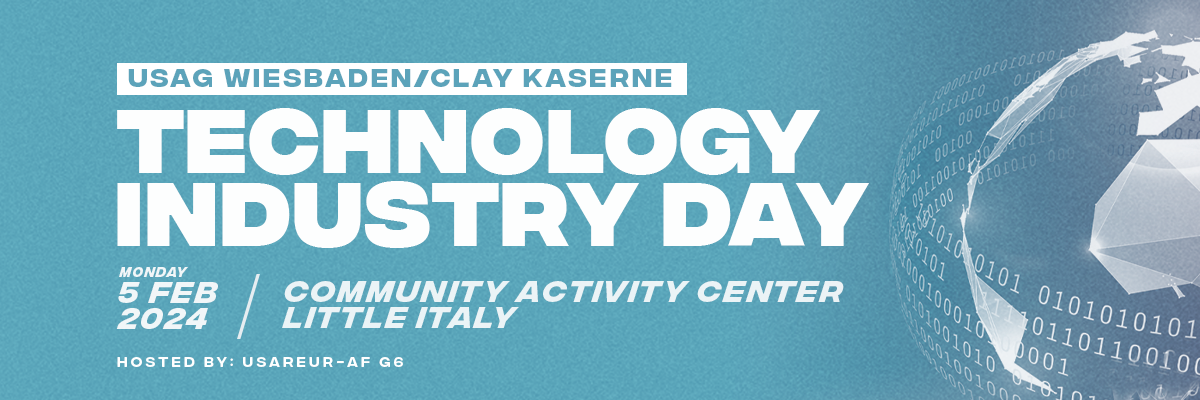 The USAG Wiesbaden/Clay Kaserne Technology Industry Day is taking place on Monday 5 February 2024 at the Community Activity Center/Little Italy Restaurant. During the day, government and industry are given the opportunity to collaborate on mission requirements, as industry partners showcase their latest mission-centric technologies.