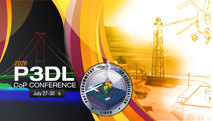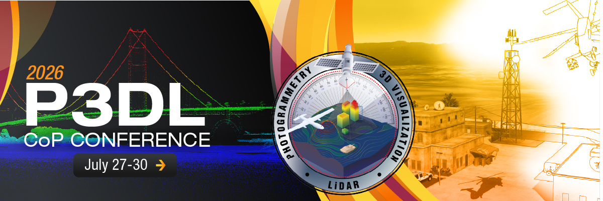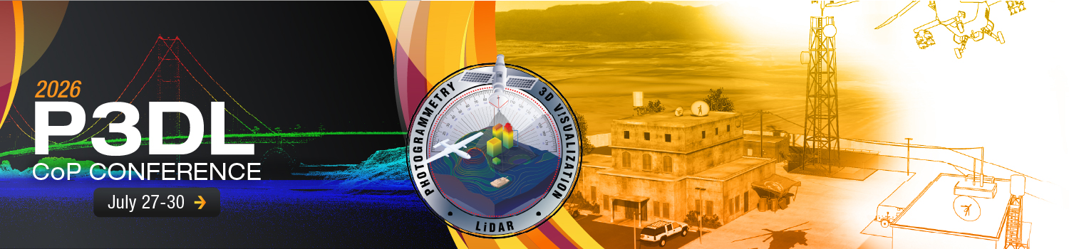 The Photogrammetry, 3D Visualization, and Lidar (P3DL) Community of Practice Conference will take place 27-30 July 2026. This is a joint conference between Photogrammetry and 3D Visualization CoP and the Lidar/3D CoP. This year’s theme is “Operational Impact through Innovation: P3DL Driven Solutions for Emerging Challenges.”
